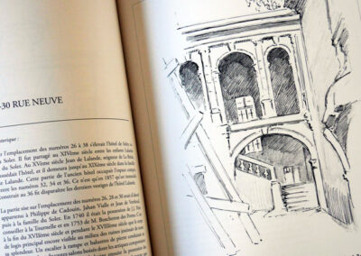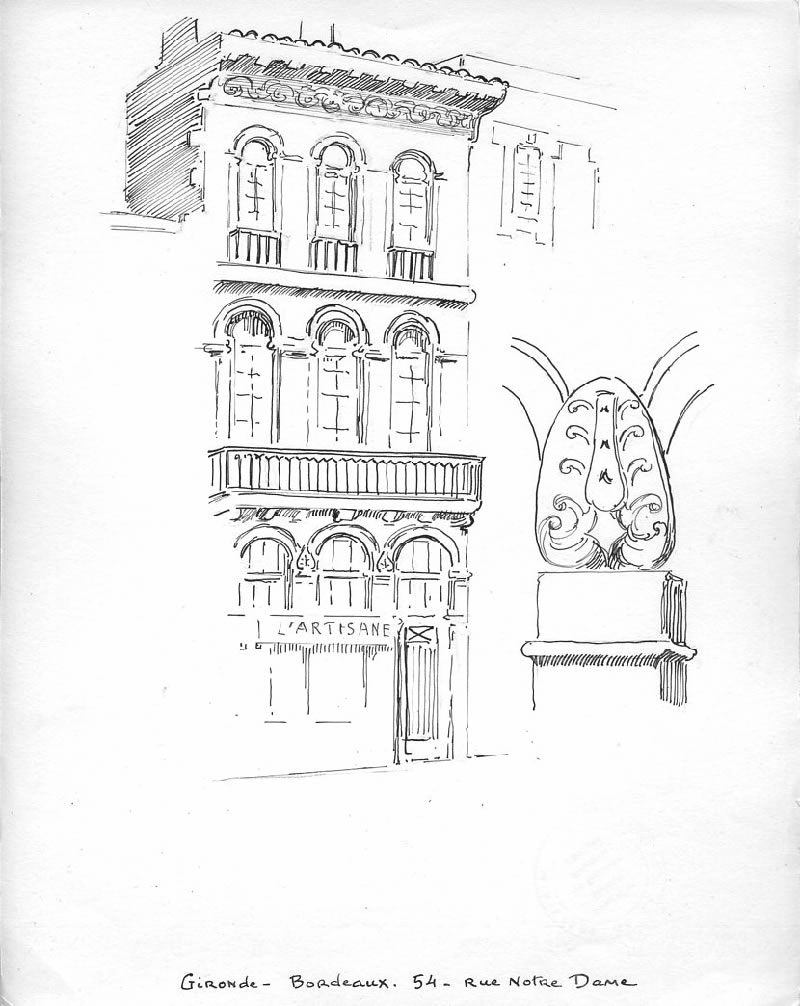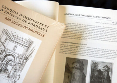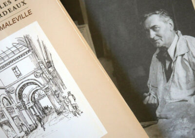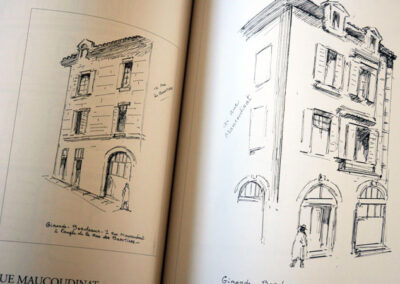 Ses dessins accompagnaient les notices descriptives de recensement qu’il livrait à l’Administration. Il assistait dans cette tâche l’architecte des Monuments historiques de l’époque.Cet ouvrage, publié en partenariat avec l’Association Lucien de Maleville, présente près de 200 dessins concernant une cinquantaine de rues et places de Bordeaux, et plus d’une centaine d’édifices différents.